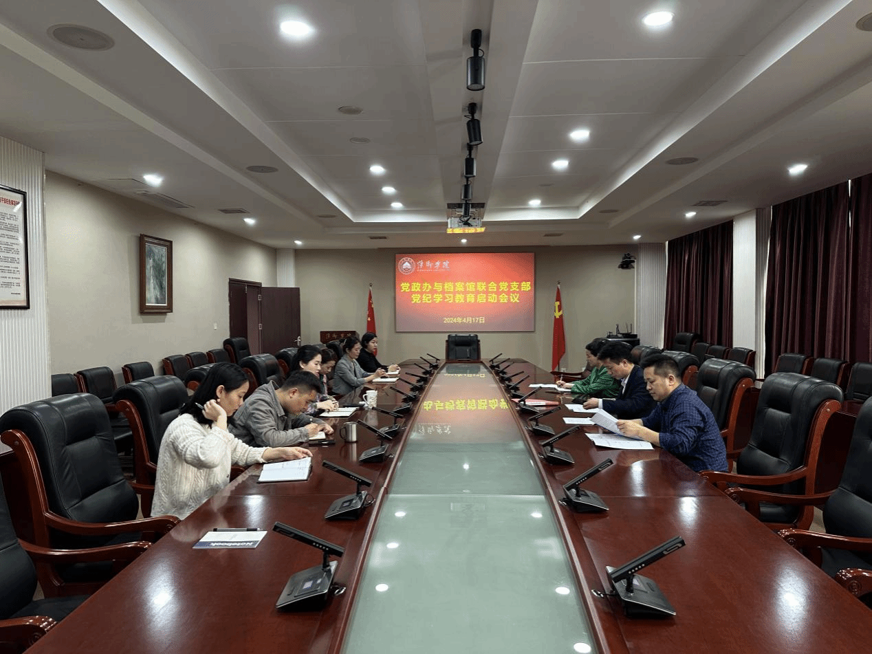 为了进一步加强党员干部的党纪教育,提高党员干部的纪律观念,根据学校开展党纪学习教育工作的安排,2024年4月17日,党政办与档案馆联合支部召开党纪学习教育启动会议。